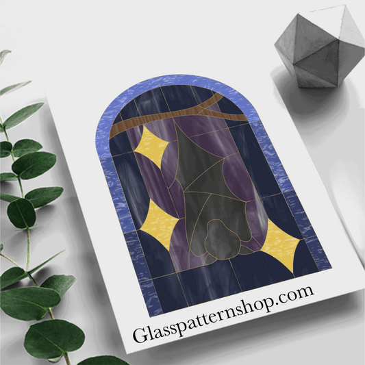 Hanging Bat and Stars Stained Glass Printable Pattern – DIGITAL PRODUCT
