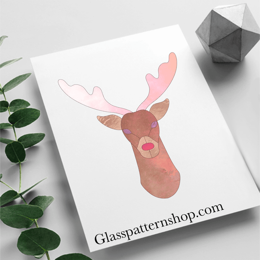 Reindeer Head Stained Glass Pattern | Digital Download - Holiday Décor