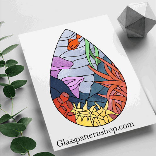 Teardrop Coral Scene Stained Glass Pattern | Ocean Suncatcher Design | Digital Download