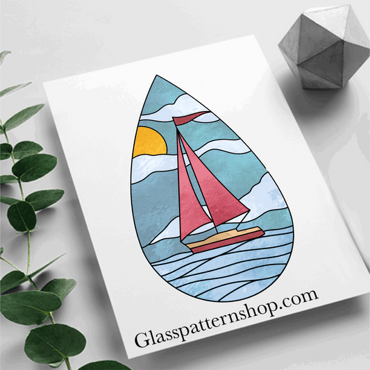 Teardrop Ship Stained Glass Pattern | Nautical Suncatcher Design | Digital Download