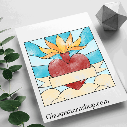Flaming Heart Stained Glass Pattern | Digital Download for Shadow Box Frames