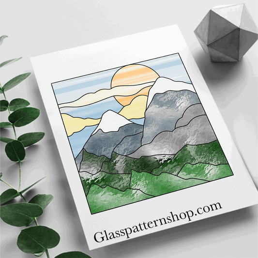 Mountain Scene Stained Glass Pattern | Digital Download for Shadow Box Frames
