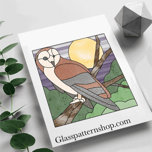 Owl on a Branch Stained Glass Pattern | Digital Download for Shadow Box Frame Projects