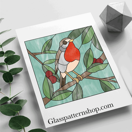 Robin on a Branch Stained Glass Pattern | Digital Download for Shadow Box Frame Projects