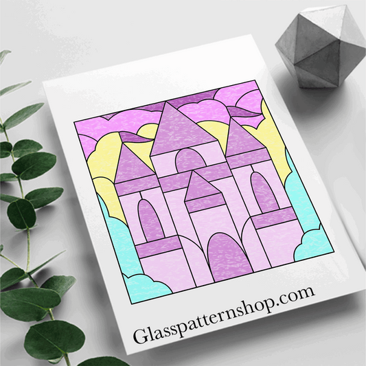 Castle Stained Glass Pattern | Digital Download for Shadow Box Frame Projects