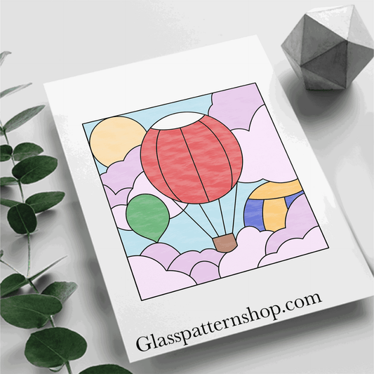 Hot Air Balloon in the Clouds Stained Glass Pattern | Digital Download for Shadow Box Frame Projects